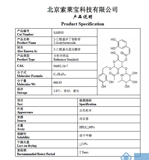 2-Acetylacteoside;2-乙酰基洋丁香酚苷